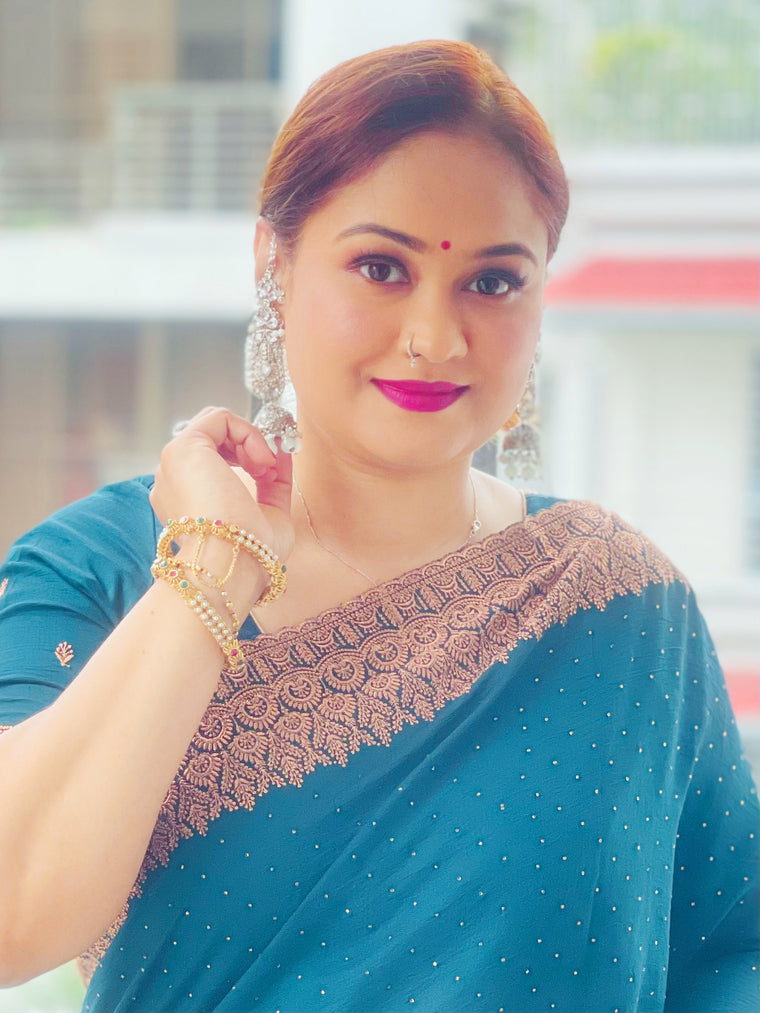 Royal Blue Embroidered Chiffon Kameez | Luxury Silk Farshi Salwar Party Wear | Free Shipping