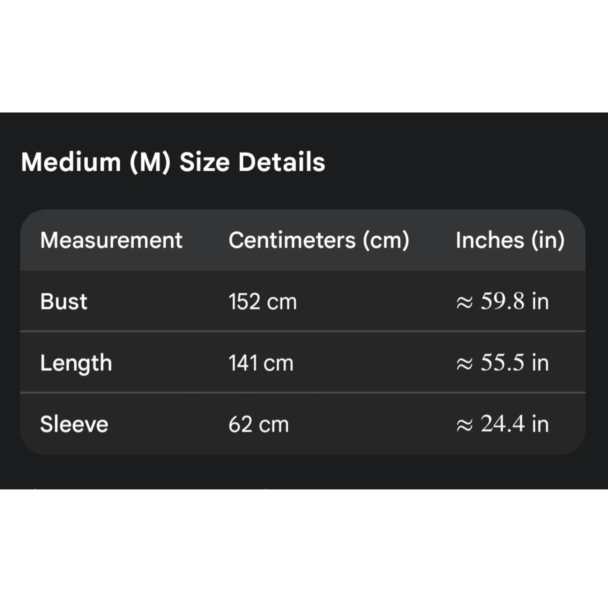 - Sizing Note (Crucial!): Available in Medium size only. Please check our size chart for specific measurements.